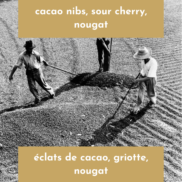 Après avoir été récoltées à maturité maximale, les cerises de café sont dépulpér mécaniquement, éliminant une partie du fruit et puis sécher pendant 6 jours sur des terrasses. Les cerises sont ensuite mis dans des séchoirs contrôlés durant 30 heures (22°C max. - 8°C min.) pour qu'elles puissent atteindre leur niveau d'humidité optimal.