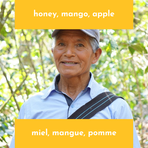 Pedro Guzmán Jiménez est un homme doux à la personnalité marquante—bienveillant et courageux—qui a été témoin de l’arrivée de la culture du café à Tenejapa et y est resté fidèle. Il vit selon une philosophie simple : lorsqu’il plante, il prend soin de la terre ; lorsqu’il travaille dans les caféiers, il soutient sa famille ; et lorsqu’il récolte, il renforce sa communauté. Cette récolte marque notre première collaboration avec Caféología, notre partenaire d’exportation.
