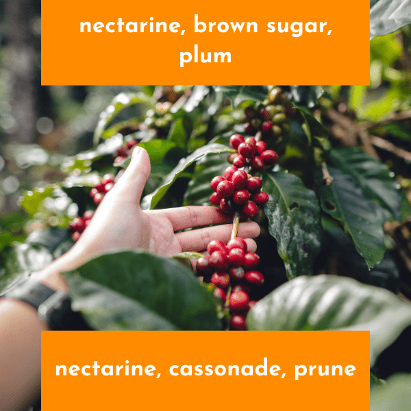 Processing begins with the selective harvesting of ripe coffee cherries, which are then pulped to remove the outer skin while retaining 20% of the mucilage. The cherries are spread on patios and raised drying beds and are carefully monitored and turned periodically to ensure uniform drying over several weeks. As the mucilage dries, it takes on a white hue, indicating the sugar content and level of fermentation. Once dried to the desired moisture content, the mucilage is removed, and the beans are sorted and allowed to rest to stabilize moisture and mature the flavors.